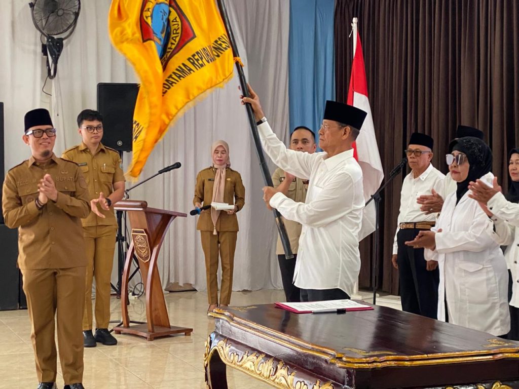Pengukuhan organisasi para Pensiunan ASN itu ditandai dengan pembacaan naskah pengukuhan dan penyerahan bendera Petaka oleh Bupati OKU H Teddy Meilwansyah kepada Ketua PWRI OKU Drs H Supriyadi Jazid beserta pengurus lainnya.